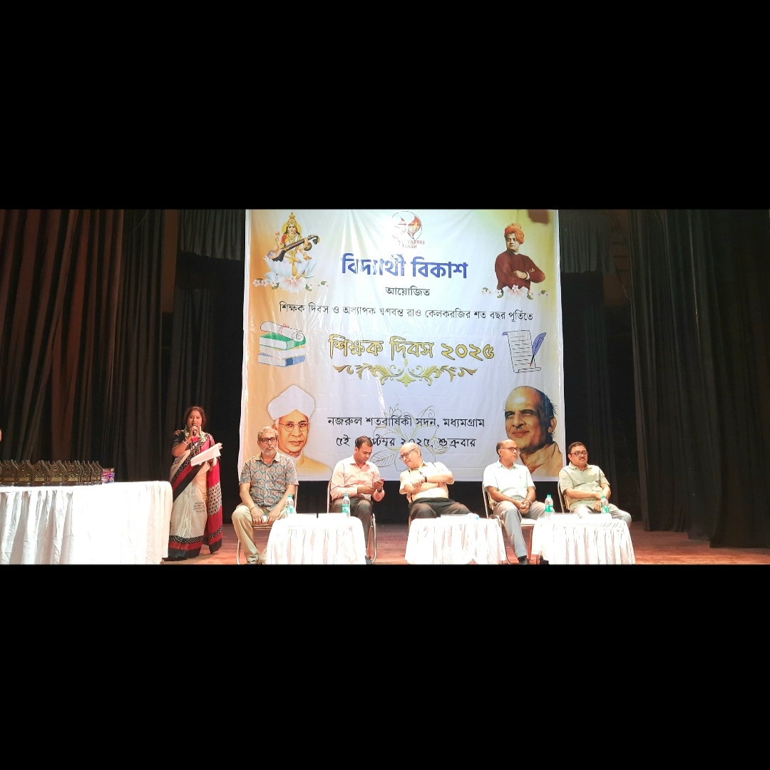 মধ্যমগ্রাম, ৫ সেপ্টেম্বর, ২০২৫, নিউজ ব্যুরো আমার আলো, হিরন ঘোষাল: এক সুবর্ণ সন্ধ্যায় মধ্যমগ্রামের নজরুল শতবার্ষিকী সদন হয়ে উঠল জ্ঞান ও শ্রদ্ধার পীঠস্থান। বিদ্যার্থী বিকাশ আয়োজিত এক বর্ণাঢ্য অনুষ্ঠানে পালিত হল শিক্ষক দিবস এবং একই সাথে উদযাপিত হল স্বনামধন্য শিক্ষাবিদ অধ্যাপক যশবন্ত রাও কেলকরজির শতবর্ষ পূর্তি। শিক্ষা ও সংস্কৃতির এই