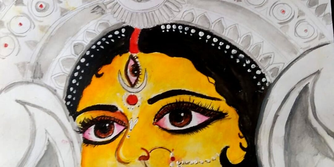 গজপৃষ্ঠে অবতারণ করছেন ক্রোধান্বিত দেবী দুর্গা